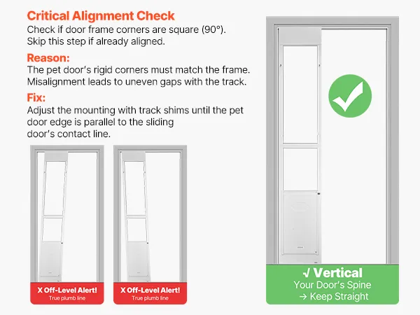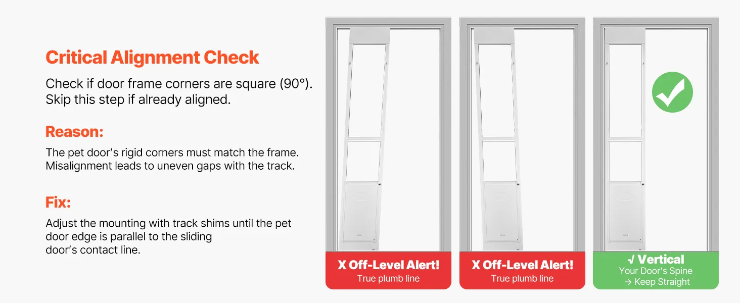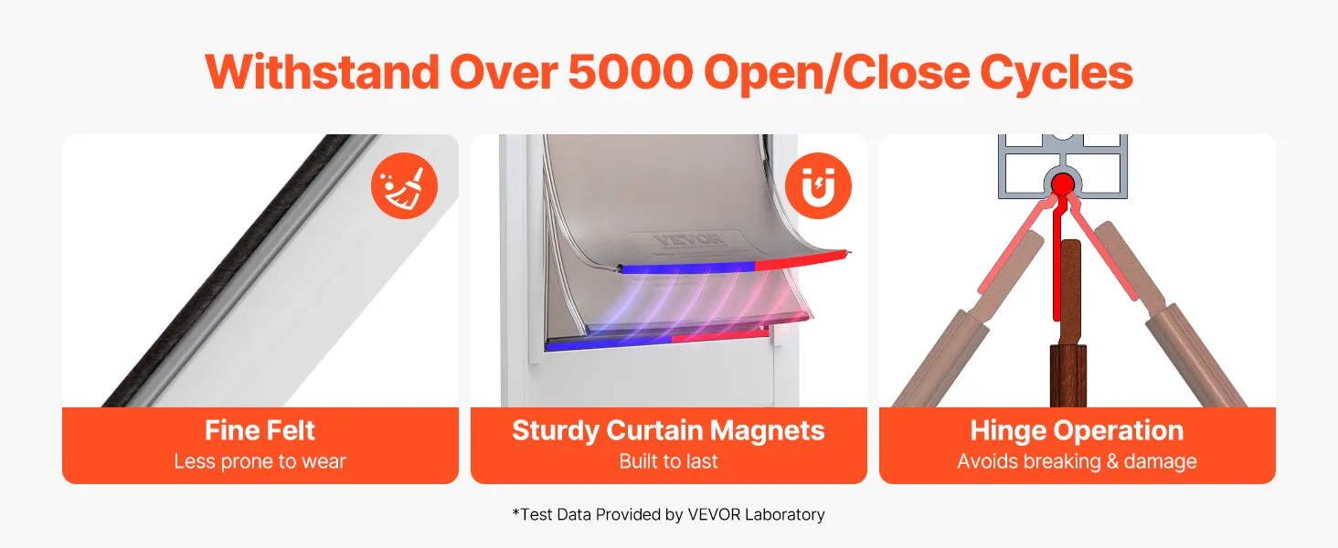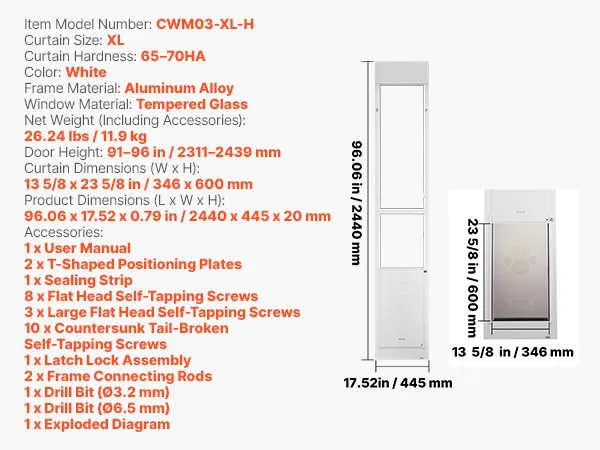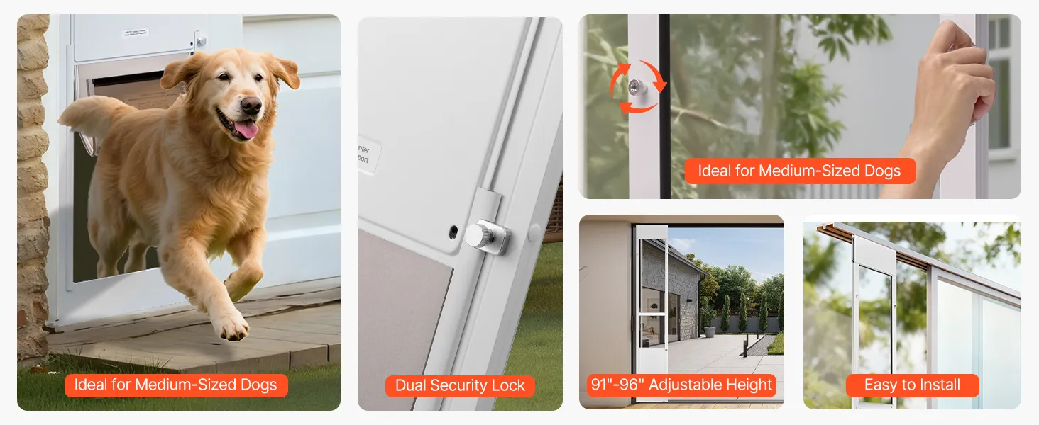 Hoogteverstelbaar: Het hondenluik voor glazen schuifdeuren is in hoogte verstelbaar van 2311 tot 2439 mm (91 tot 96 inch) en past op verschillende deurkozijnmaten. Deze functie vereenvoudigt de installatie en maakt het gemakkelijk voor zowel beginners als ervaren gebruikers.