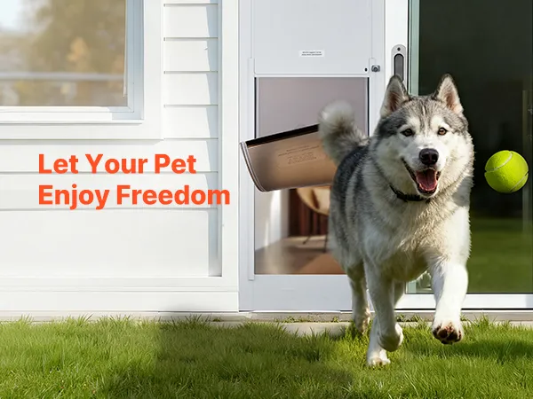 Duurzaam: De verbeterde metalen plaat en de nieuwe scharnierstructuur garanderen een lange levensduur, zelfs bij lage temperaturen. Het aluminium frame en gehard glas zorgen voor een robuust, stijlvol ontwerp, waardoor de glazen schuifdeur de ideale in- en uitgang is voor uw huisdier.