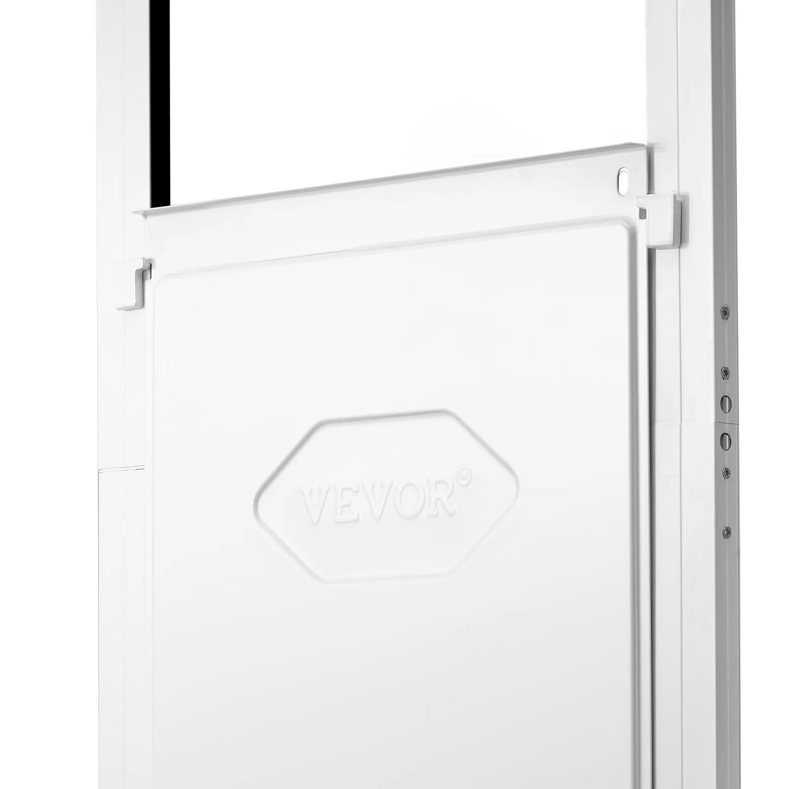VEVOR Hondenluik voor glazen schuifdeur, hoogteverstelbaar van 2311–2439 mm, frame van aluminiumlegering met draaibare metalen scharnieren en slotontwerp, afmetingen gordijn 346 x 600 mm, wit