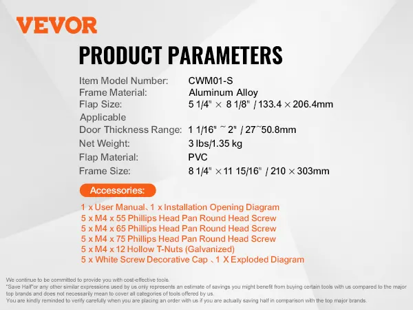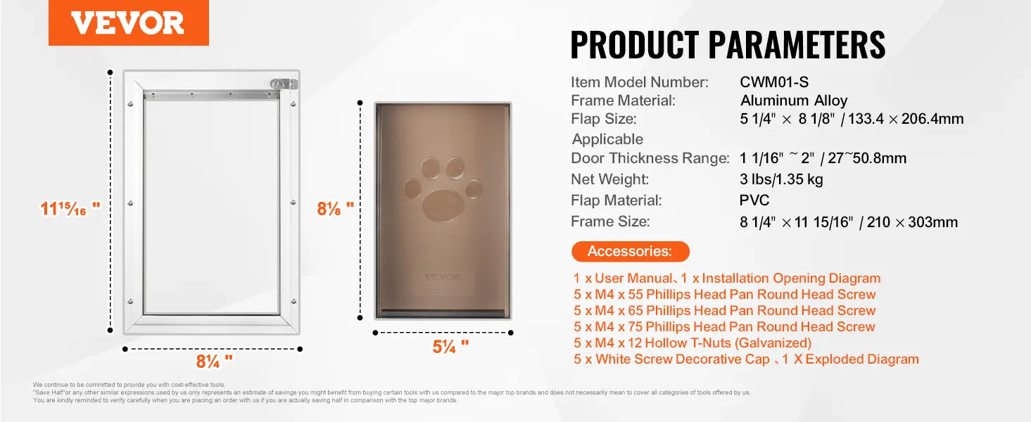 Fits Various Door Thicknesses: Our dog door is suitable for doors with a thickness of 1.06"-2"/2.7-5.08 cm, and it comes with a detailed installation guide and all necessary hardware. Even beginners can install it easily and quickly.