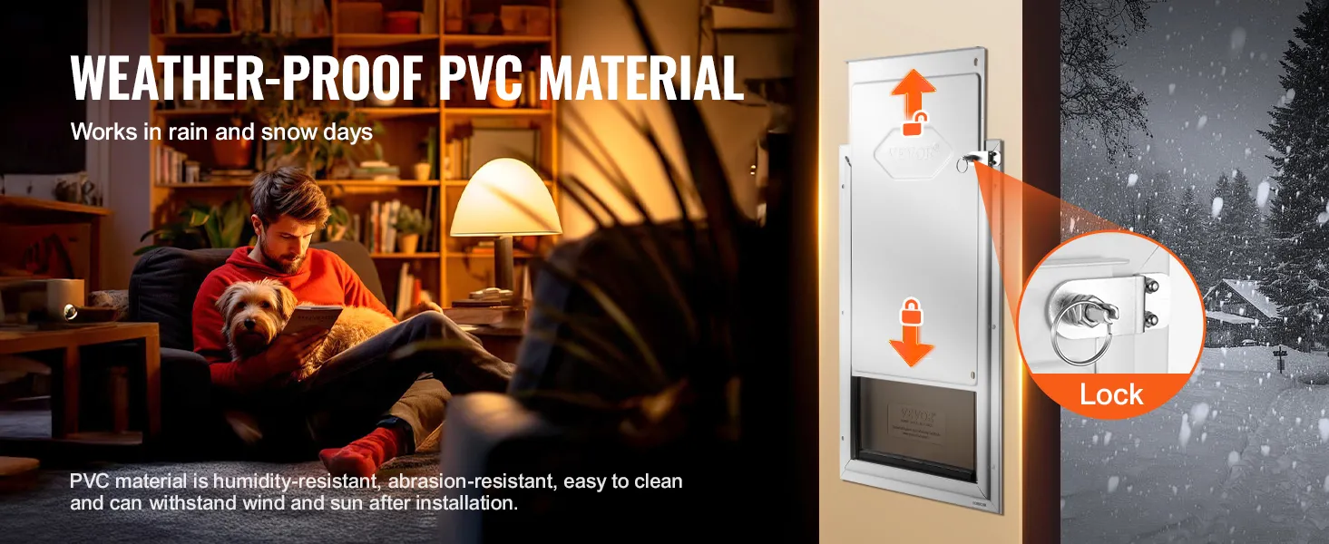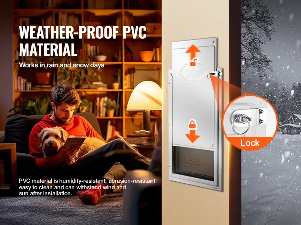High-Quality Materials: Built with a sturdy aluminum alloy frame and frosted PVC door flap, this flap pet door is designed to withstand wind, rain, and cold, making it ideal for all weather conditions. It offers long-lasting and reliable performance.