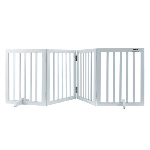 VEVOR Free Standing Dog Gate, 32" H x 96.5" W Freestanding Pet Gate, 4 Panels Foldable Dog Gate for Wide and Narrow Passageways, Expandable Dog Barrier with Silent Foot Support for Indoor, White