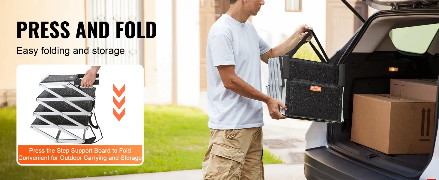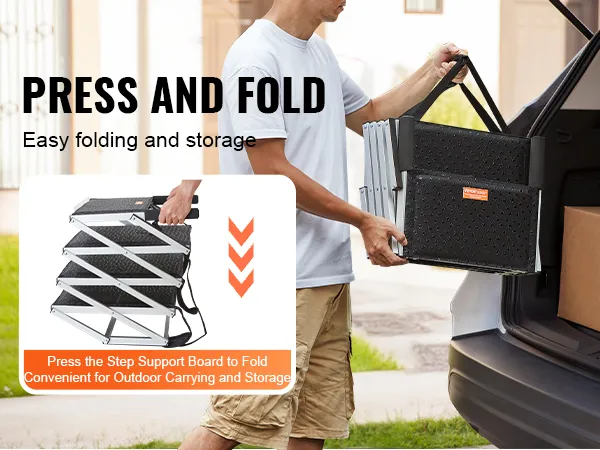 Het draagbare ontwerp zorgt ervoor dat u de trap met uw huisdier kunt nemen waar u ook gaat, waardoor uw hond gemakkelijk toegang heeft tot uw auto of andere verhoogde oppervlakken. Het handig op te bergen ontwerp zorgt ervoor dat de trap altijd binnen handbereik is wanneer u hem nodig hebt.