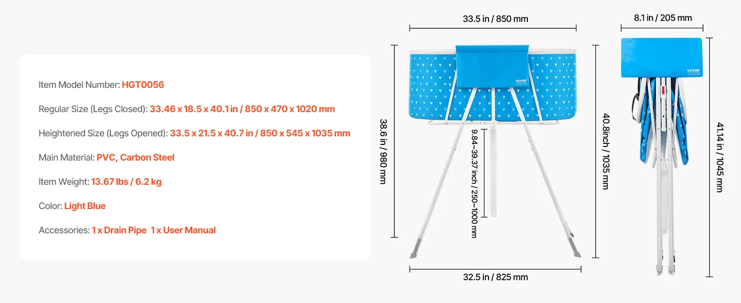 VEVOR Portable Dog Bathtub, Elevated & Foldable Space-saving Pet Shower Station with Quick Drainage, Bathing Tub for Washing & Grooming Small and Medium Size Dogs and Cats Indoor & Outdoor, Light Blue