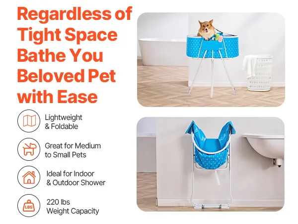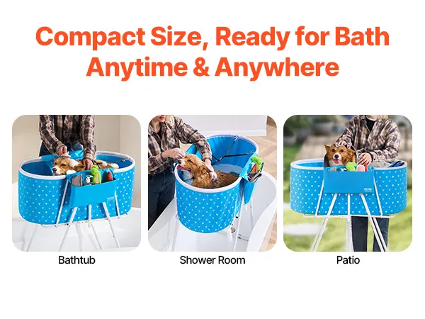 Foldable Space-Saving Structure: Tired of struggling with tight spaces that make pet bathing difficult? Our foldable pet bathtub is specifically designed for compact spaces. Whether it's in your shower, ceramic bathtub, or even your outdoor patio, you can easily bathe your pets in these smaller areas. Once folded, its 8-inch compact width makes storage a breeze, fitting neatly into home gaps or corners without taking up valuable space.