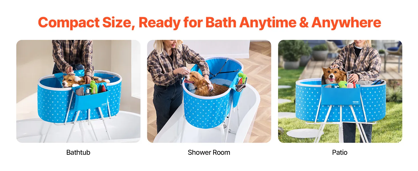 No More Bending & Back Pain: Bending over for long while bathing your pet can leave your back sore and strained. With the stable, upright design of our pet bathtub, you can stand comfortably throughout the whole bathing process. Plus, the included storage bag and secure straps ensure everything is within reach and keeps your pet secure, preventing any accidents.
