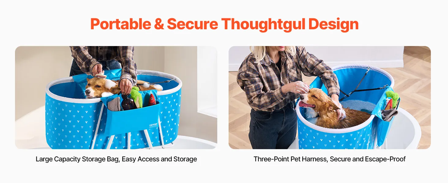 The dog bathtub comes with a large-capacity storage bag and secure straps, offering thoughtful details that make your pet bathing experience more convenient and flexible.