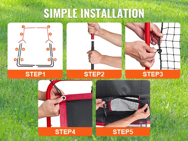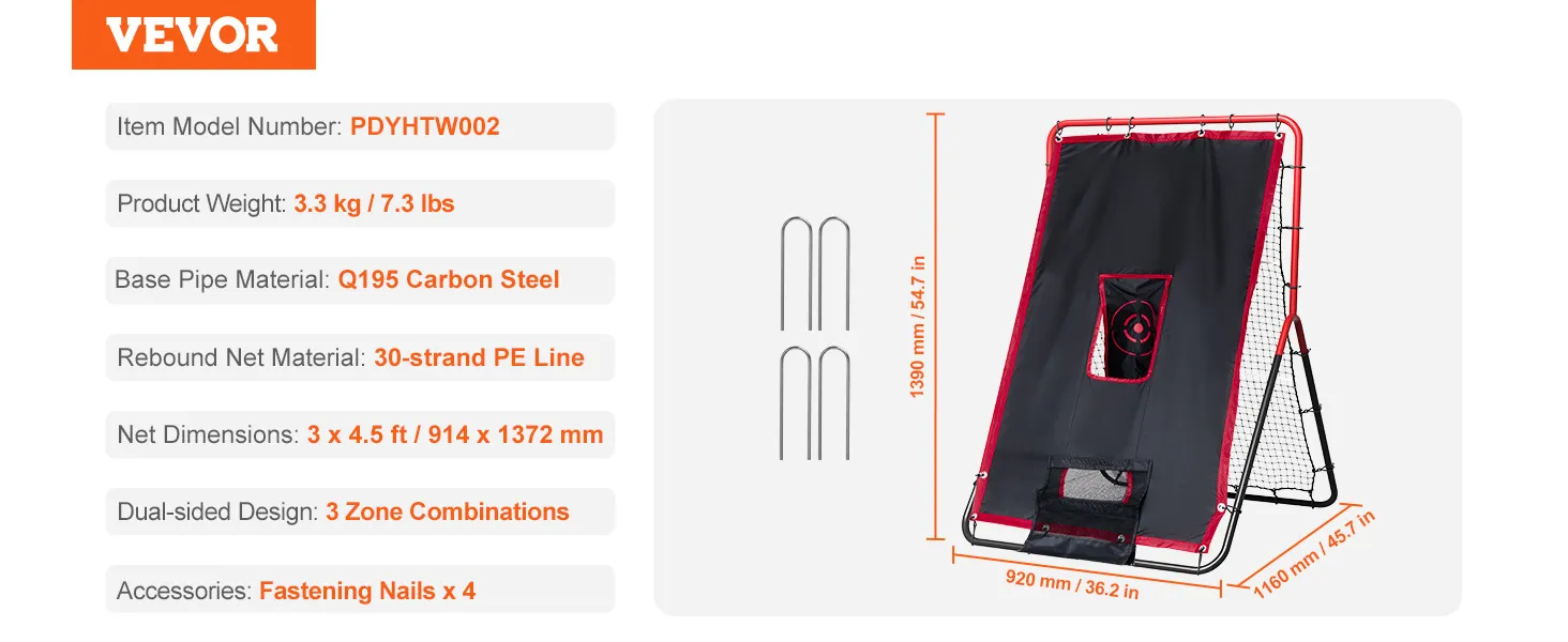 Durable Steel Construction: Constructed with Q195 heavy-duty steel frame and UV-resistant PE rebound netting. Includes 4 sturdy ground stakes to withstand high-impact practice without tilting or collapsing. Durable materials resist wear and tear.