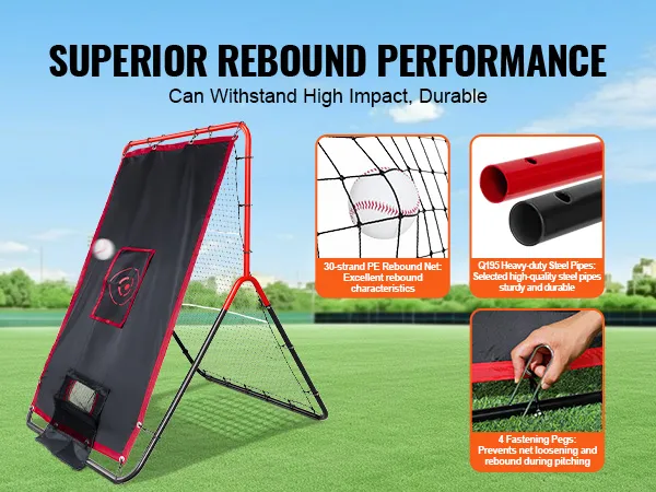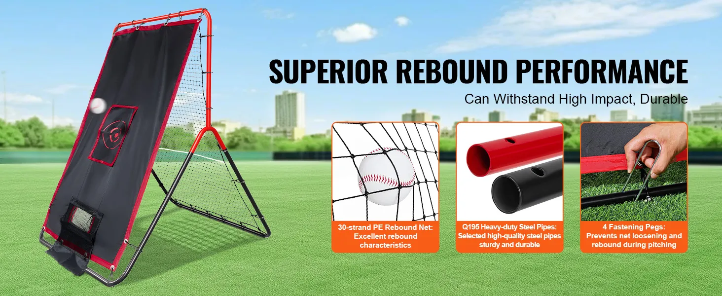 Players can pitch baseballs into the rebound net, which bounces back after hitting the net, allowing players to practice pitching and catching skills, enhancing reaction speed and hand-eye coordination. Suitable for baseball and softball practice.