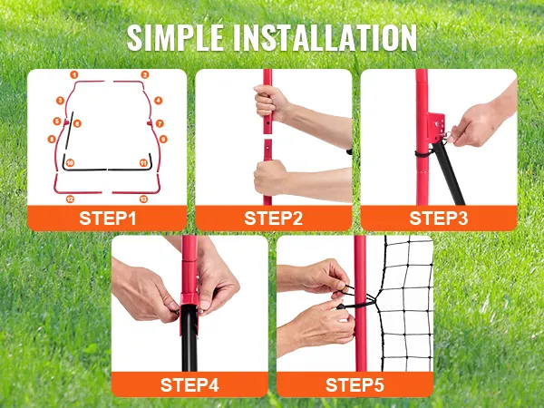 Stevige stalen constructie: gemaakt van stevig Q195 stalen frame en UV-bestendig PE-rebound-net. Inclusief 4 stevige vloerpalen die bestand zijn tegen hoge belastingen zonder om te vallen of in te storten. Robuuste materialen zijn slijtvast.