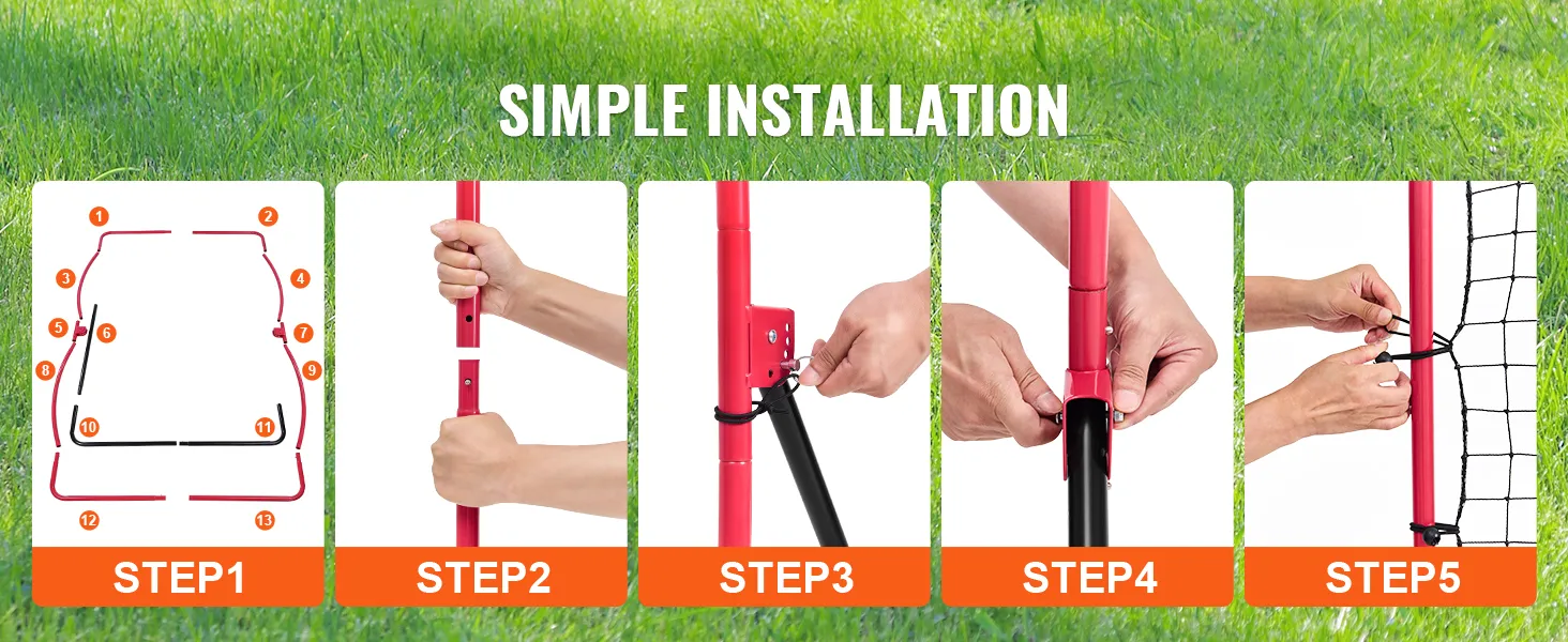 Eenvoudig te monteren: Dankzij de eenvoudige montage kan het honkbal-reboundnet snel door één persoon worden opgebouwd, zodat de training moeiteloos en zonder vertraging kan beginnen. Ideaal voor individuele oefeningen binnen en buiten en biedt comfort en flexibiliteit.