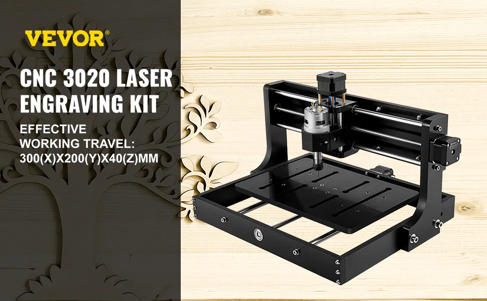 Deze CNC-graveermachine met een effectief werkgebied van 300 (X) x 200 (Y) x 40 (Z) mm (11,8" x 7,8" x 1,6"), is gemaakt van aluminium en bakeliet. Hij beschikt over een USB-poort, GRBL-besturingskaart, gemakkelijk te bedienen met computers, kan worden gebruikt voor het graveren van alle soorten kunststoffen, zacht aluminium, hout, PVC, enz., een uitstekende en betaalbare zelflerende graveermachine!