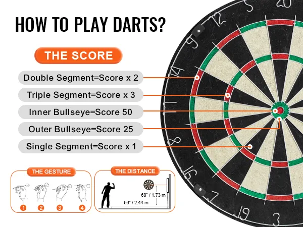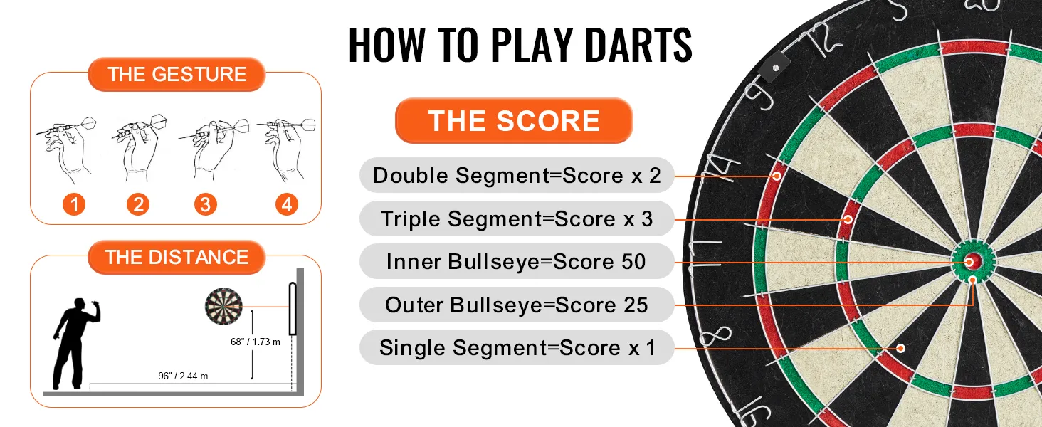 Klassieke scoreregistratie: houd uw spel moeiteloos bij met het klassieke zwarte scorebord dat gemakkelijk schoon te vegen is. De dart- en dartbordset bevat hoogwaardige dartpijlen met stalen punten met groeven en ringen voor een consistente grip, evenals darthouders om uw darts op te bergen wanneer u deze niet gebruikt.