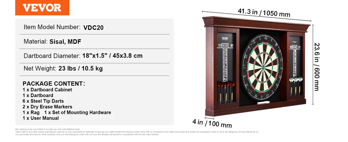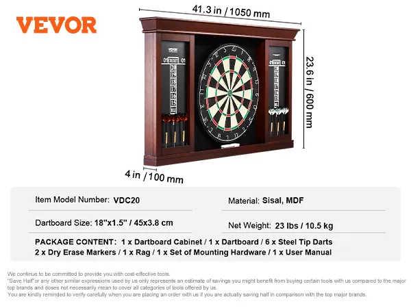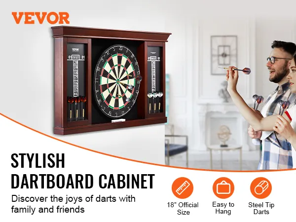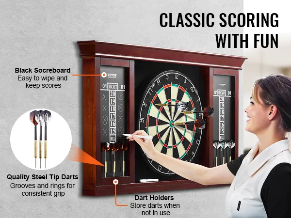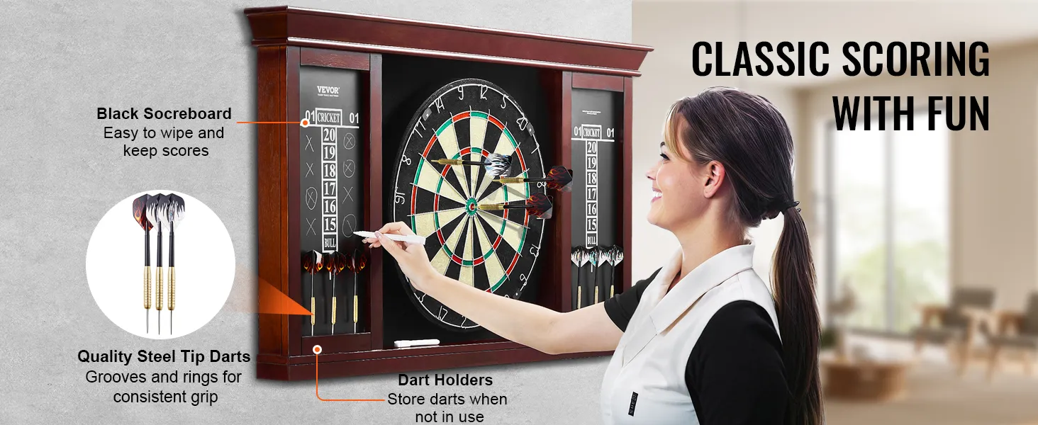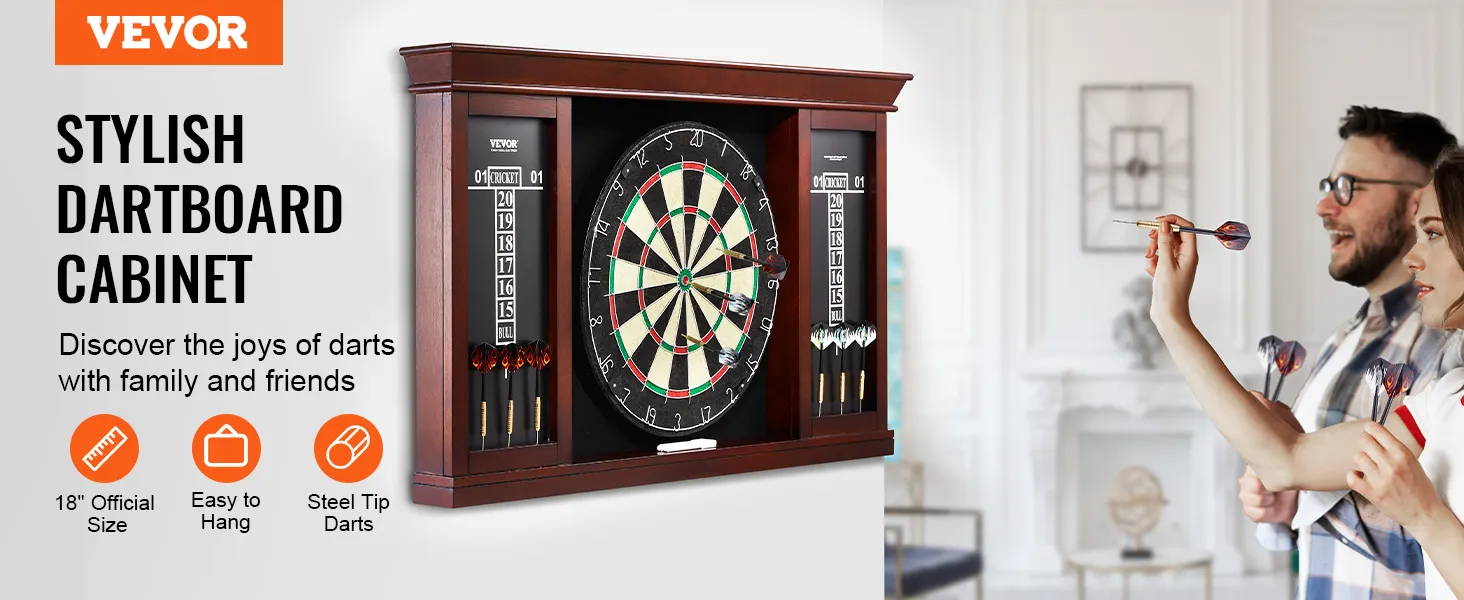 VEVOR Dartboard and Cabinet Set, Ready-to-Play Bundle Official Size Dartboard Cabinet Set, Steel Tip Dart Cabinet, Features Easy Assembly, Complete with All Accessories, Perfect for Cricket Games