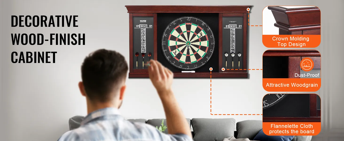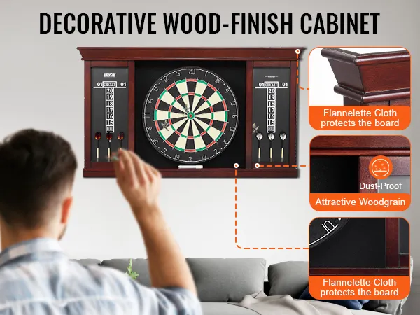 Official Size & Refined Look: This dartboard cabinet is perfect for both recreational and competitive play. Enhance your skills with an official size dartboard and offers a premium playing experience.