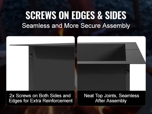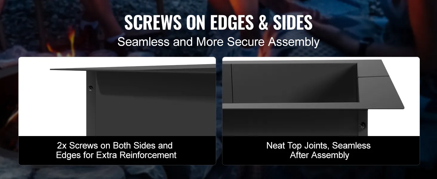 Voorzien van schroeven rond de rand en zijkanten van de ronde vuurring voor meerdere verstevigingen die voor stabiliteit zorgen. De bovenverbindingen sluiten netjes en strak op elkaar aan, zijn naadloos en stevig, waardoor losraken of vervormen tijdens gebruik wordt voorkomen.