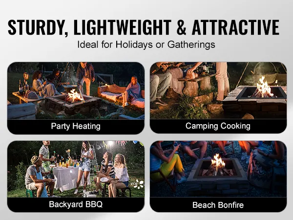 Brede toepassingen: Ideaal voor grillen in de achtertuin, tuin of terras, gezellig kampvuur met familie en vrienden en perfect voor speciale gelegenheden of vakantiebijeenkomsten om een warme sfeer te creëren.