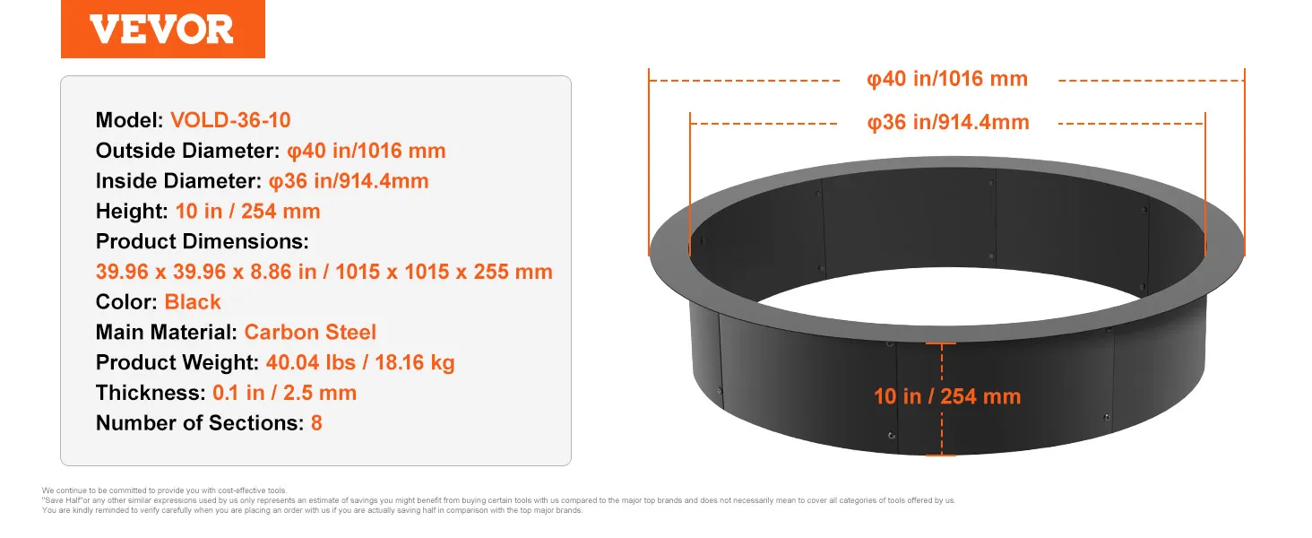 Enjoy Cozy Fires with VEVOR's Rust-Resistant Fire Ring