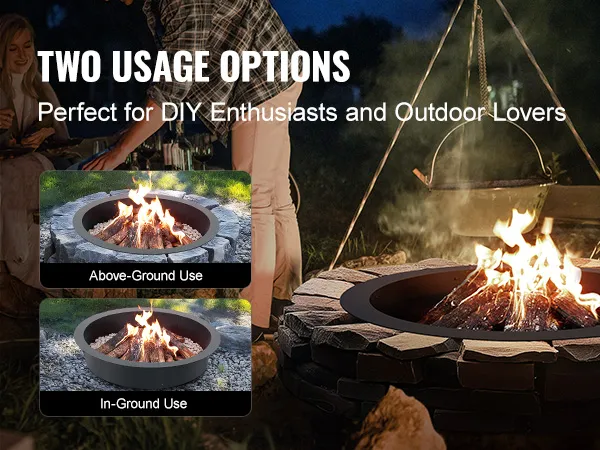 DIY Versatility: Can be used independently as a fire pit liner or integrated with landscape materials like bricks or stones. When used alone, bury the bottom underground and surround with soil to create an in-ground fire pit.