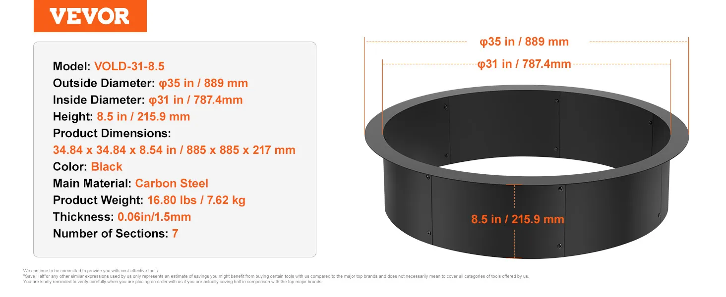Enjoy Cozy Fires with VEVOR's Rust-Resistant Fire Ring