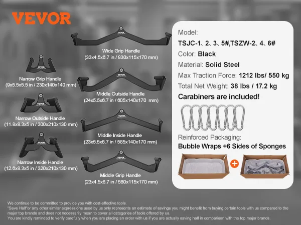 Extra hoogwaardige karabijnhaken: de meegeleverde karabijnhaken zijn 10,16 cm langer en zorgen voor een gemakkelijke bevestiging aan elk fitnessapparaat. Geschikt voor de meeste thuis- en fitnessapparatuur. Laat gewoon een karabijnhaak in de handgreepopening zitten, zodat je hem de volgende keer dat je traint snel bij de hand hebt.