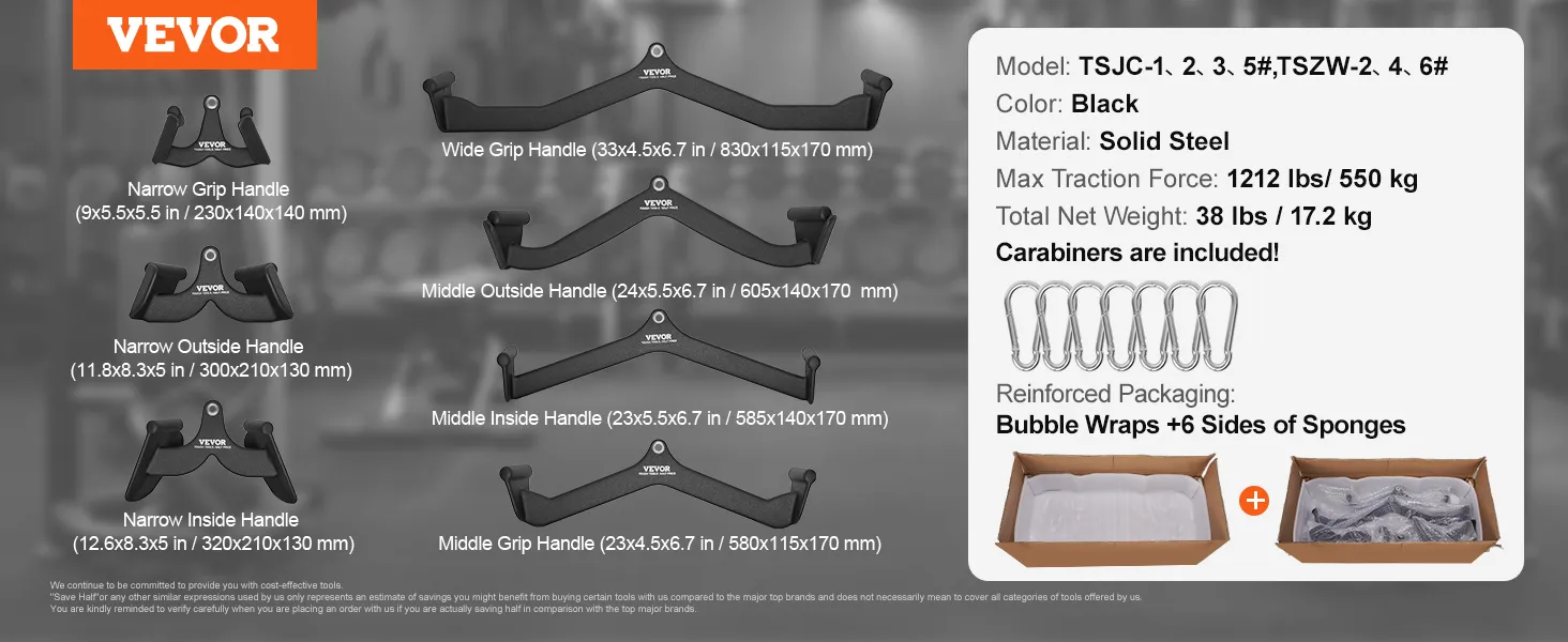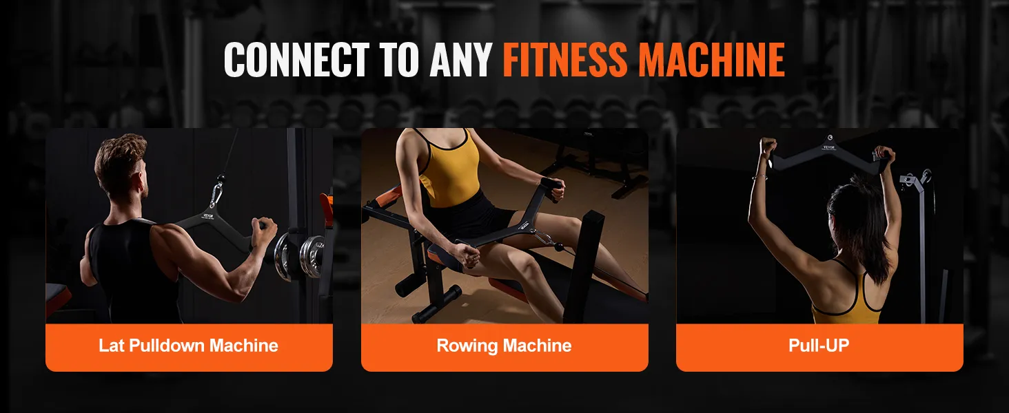 Bouw eenvoudig uw ideale lichaam op: ons kabelmachinehulpstuk is ontworpen om uw rugspieren, triceps en biceps effectief te versterken met een trekkracht tot 550 kg. Bereik uw fitnessdoelen en bouw uw ideale lichaam op met deze krachtige en betrouwbare accessoires.