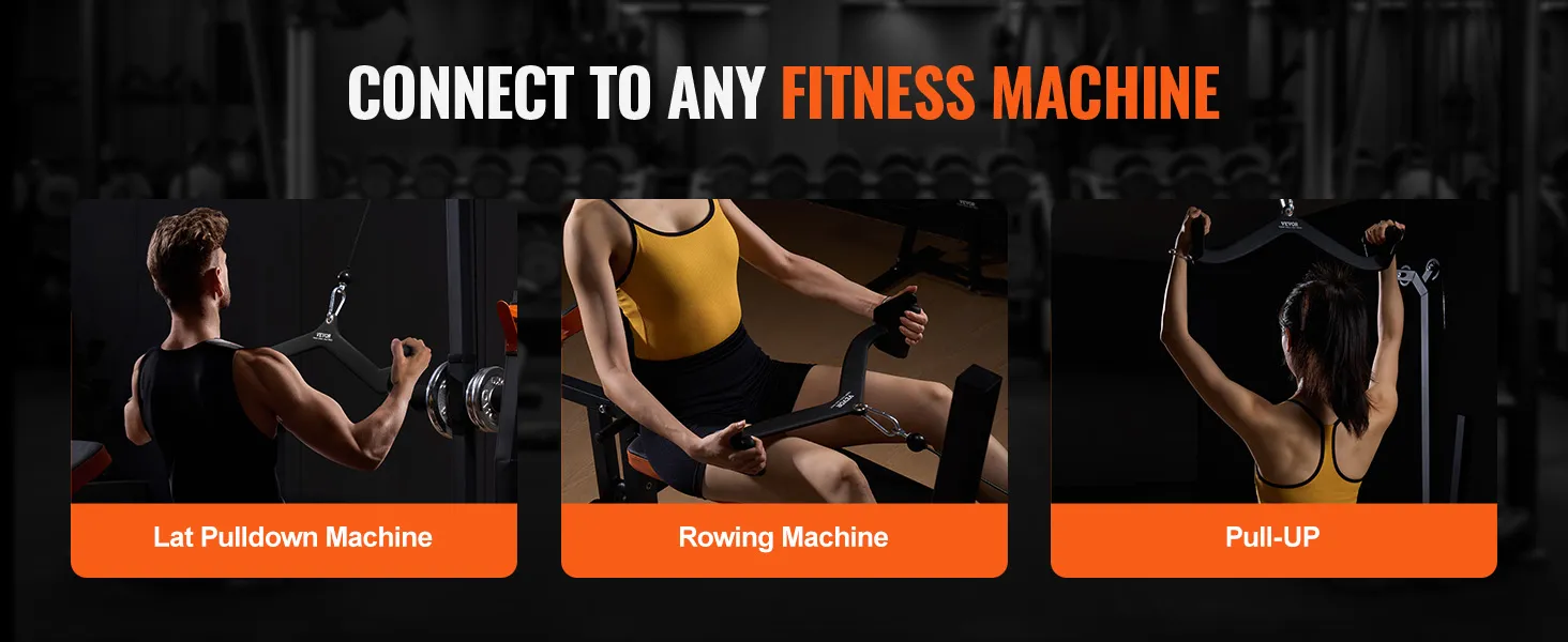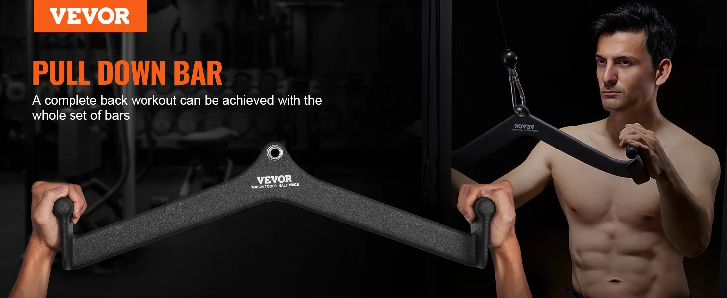 VEVOR Lat Pulldown Attachment Roei V-Bar Attachment voor Kabelmachine, Triceps Pulldown Bar, Rubberen Handgreep voor Rugkrachttraining, Biceps Curl Triceps Lat Pulldown Bar voor de Sportschool