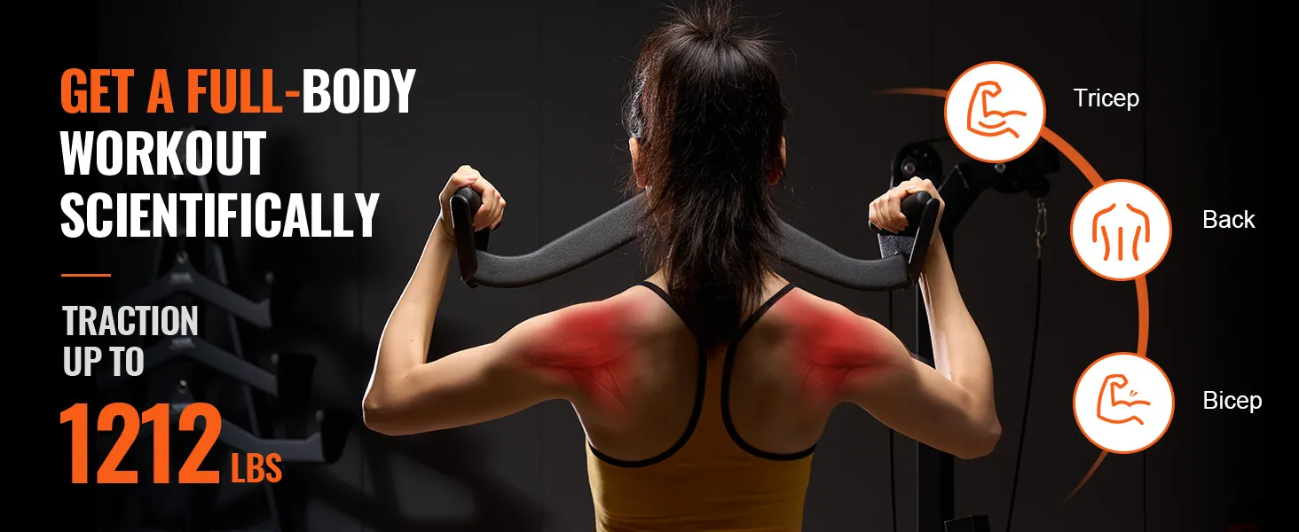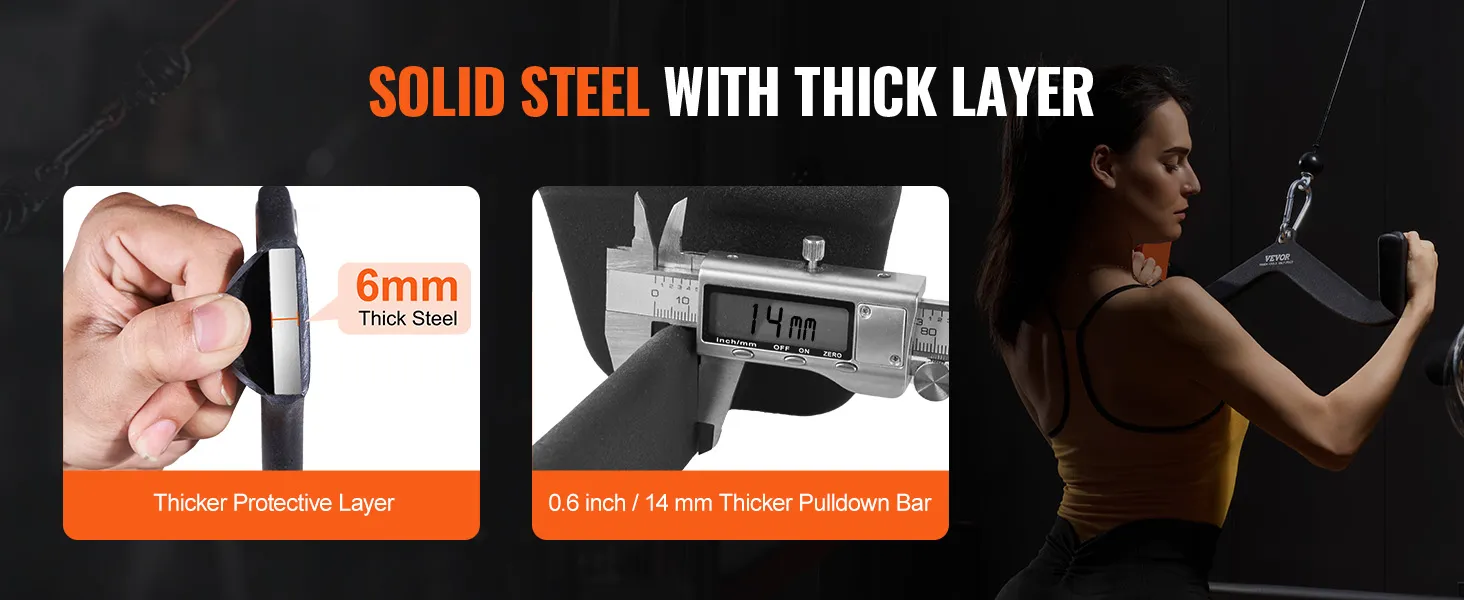 Gemaakt van een dikke laag rubber en een stevige stalen plaat, kan onze lat pulldown zelfs de zwaarste trainingen weerstaan zonder te buigen of te breken.