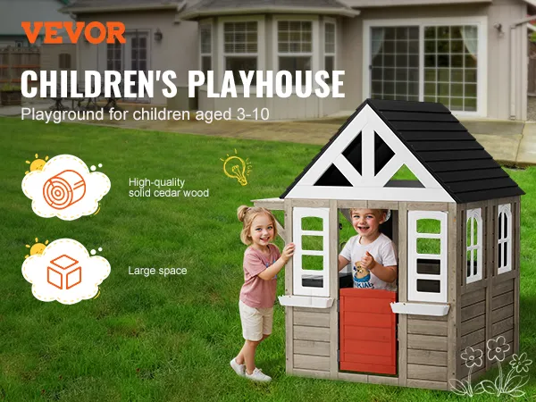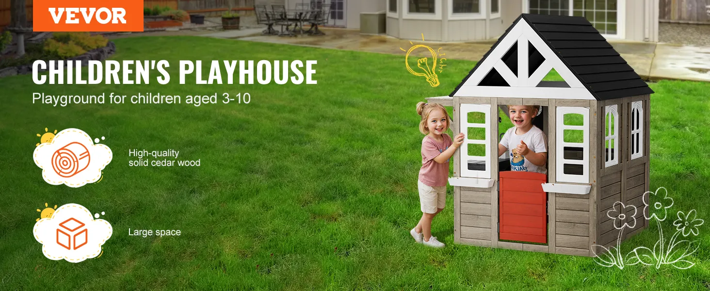 VEVOR Houten Speelhuis Kinderspeelhuis, Tuinhuis voor Kinderen vanaf 2 Jaar, Tuinspeelhut, Speelhuis van Cederhout in Landelijke Stijl met Deur, Raam, Bloempothouder, Grill, Kachel en Spoelbak