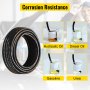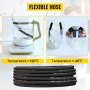 De VEVOR hydraulische slang 3/8 inch is gemaakt van hoogwaardig synthetisch rubber, zowel aan de binnen- als de buitenlaag. Dit zorgt ervoor dat de slang flexibel en slijtvast blijft. De binnenste laag is versterkt met twee zeer sterke stalen draadvlechten voor extra stevigheid. Deze materialen maken hem geschikt voor veeleisende hydraulische toepassingen. De nozzle kan tot 5000 PSI aan. Hij heeft ook een explosiedruk van 19140 PSI, wat betrouwbare prestaties garandeert. Onze hydraulische slang is ontworpen voor temperaturen van -40°C tot 121°C. Hij is dus veelzijdig voor verschillende omgevingen.