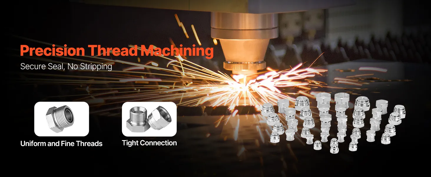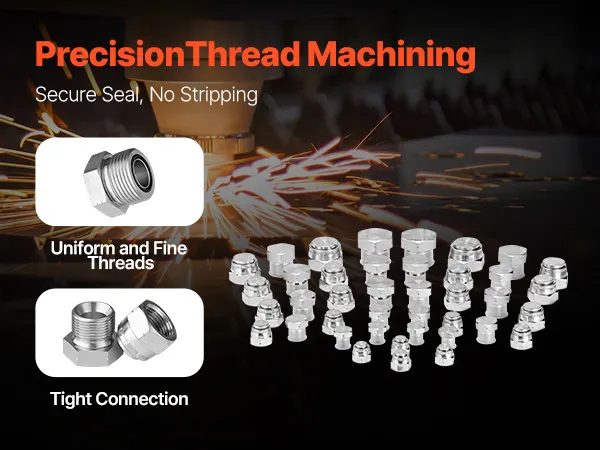 • Precision Thread Manufacturing: The hydraulic hose caps and plugs are crafted with precision fine tolerance threads, ensuring easy installation and removal. This design effectively avoids leaks and ensures secure, non-leaking hydraulic connections
