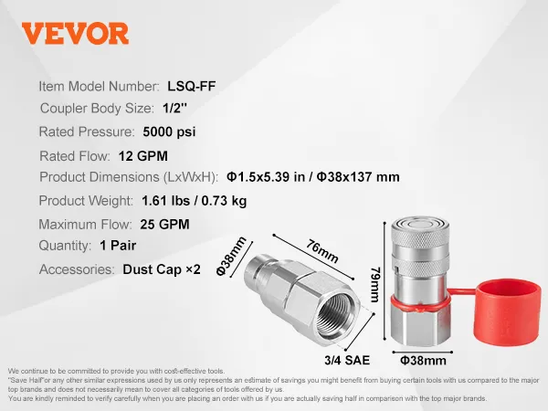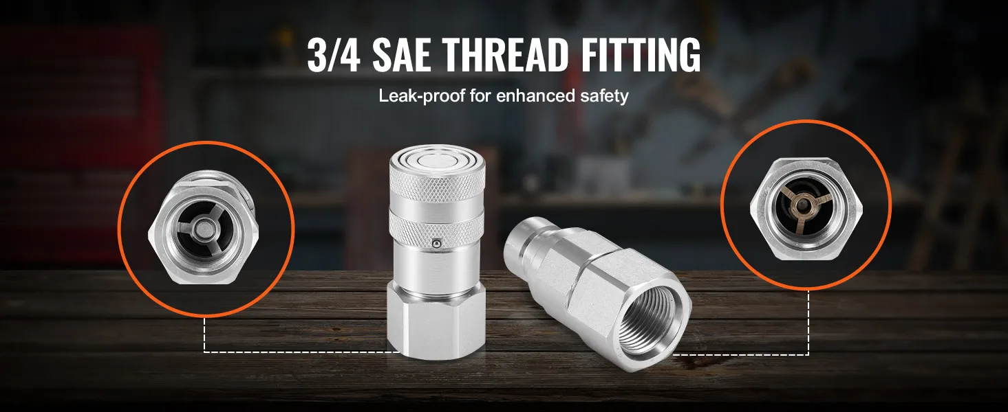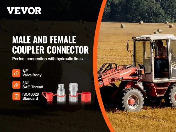 Standards Compliant: This hydraulic coupler features a 1/2" body size, with a 3/4 SAE thread size for both the male and female couplers, adhering to ISO 16028 standards, making it ideal for connecting hydraulic lines.