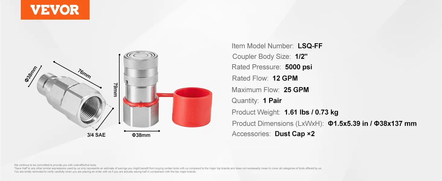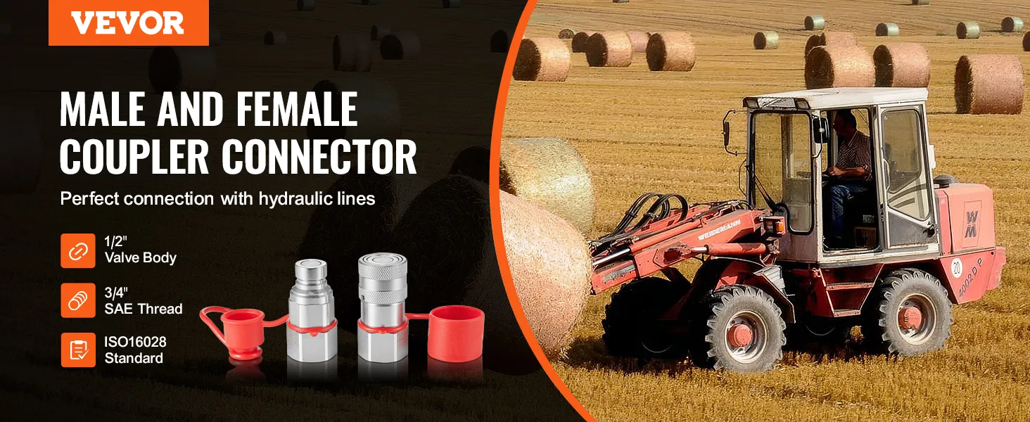 VEVOR 1/2" Flat Face Hydraulic Couplers- Tool for Connecting Hydraulic Lines!
