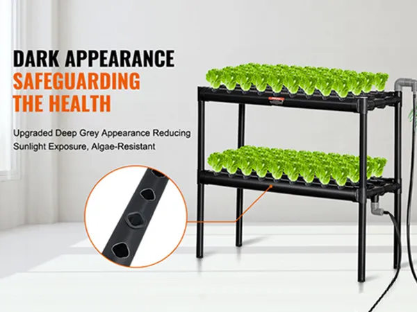 Donkere PVC-buizen: Onze donkergrijze buizen voor hydrocultuur kweeksets zijn gemaakt van hoogwaardig PVC en beschermen tegen zonlicht. Het verdikte, duurzame ontwerp is slijtvast en kan langdurig zowel binnen als buiten worden gebruikt.