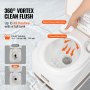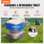 high-efficiency VEVOR portable toilet with 95 flushes per tank, pressurized piston flush, 360° coverage.