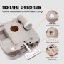 VEVOR portable toilet sewage tank with level alerts, vent valve design, and slide-seal drain valve.