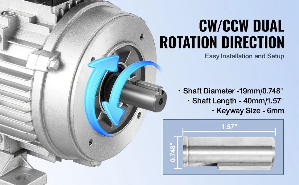 Dubbele rotatierichting: onze elektromotor biedt omkeerbare rechts-/linksrotatie, waardoor de bedrading wordt vereenvoudigd en snelle, veelzijdige verbindingen voor verschillende toepassingen mogelijk zijn.