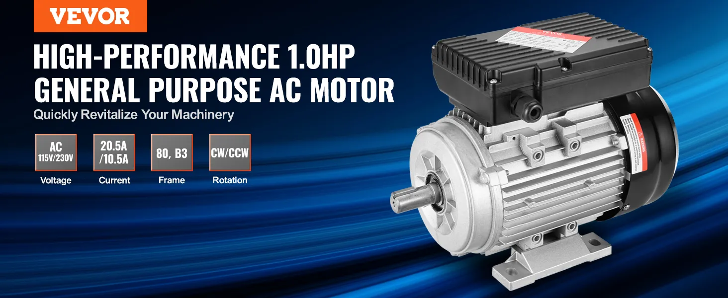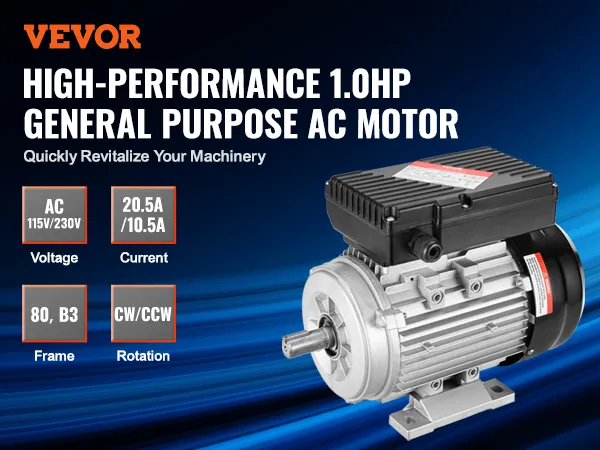 Inject powerful performance into your equipment with the VEVOR 0.75KW electric motor. Operating at AC 220~240V voltage with 5.45A current, it features 1400 RPM high speed, 80, B3 frame, 40mm shaft length, 19mm keyed shaft, and CW/CCW dual rotation direction.