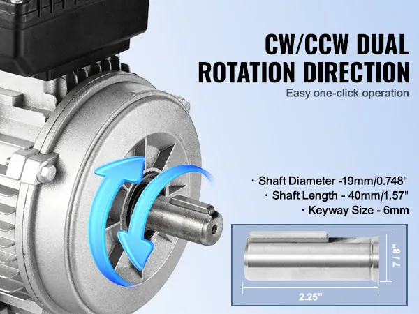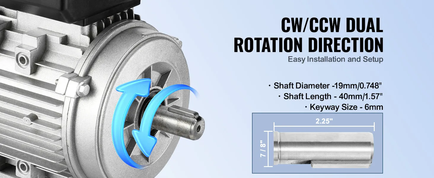 Dual Rotation Direction: Our electric motor offers reversible CW/CCW rotation, simplifying wiring installation and providing quick, versatile connections for various applications.