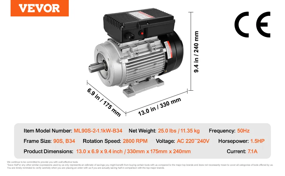 Breed scala aan toepassingen: De VEVOR-motor voor algemeen gebruik is universeel en ideaal voor waterpompen, landbouwmachines en algemene apparatuur. Het is perfect voor doe-het-zelf-projecten en reparatie-vervangingen en biedt veelzijdige en krachtige functies om aan verschillende behoeften te voldoen.