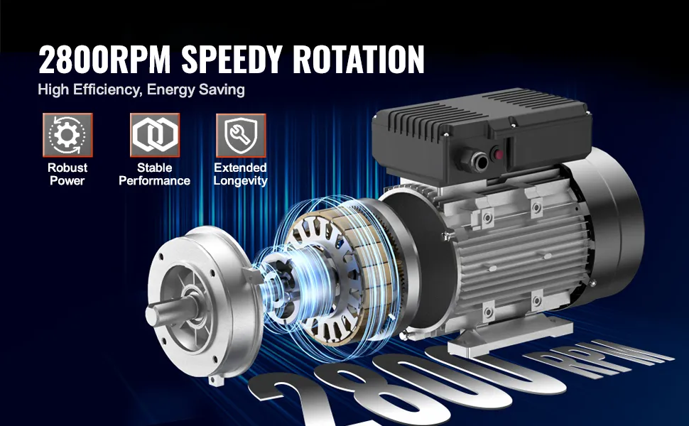 De 1,1 kW elektromotor van VEVOR biedt een hoog toerental van 2800 tpm en levert sterke prestaties voor diverse toepassingen. Het robuuste uitgangsvermogen maakt hem ideaal voor landbouwmachines en industriële installaties, waardoor energie wordt bespaard en de productiviteit wordt verhoogd.