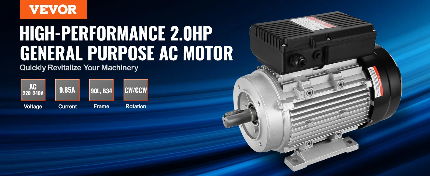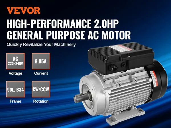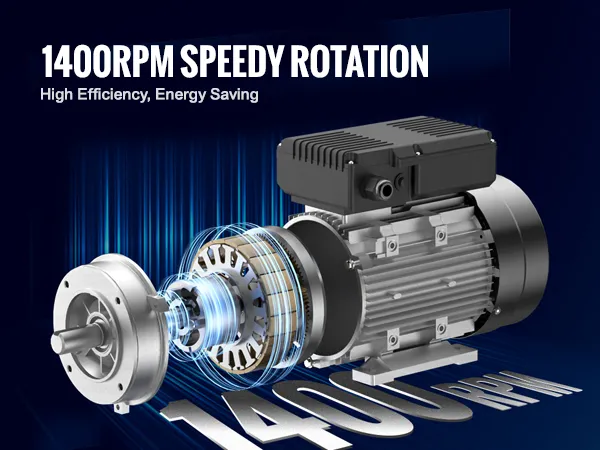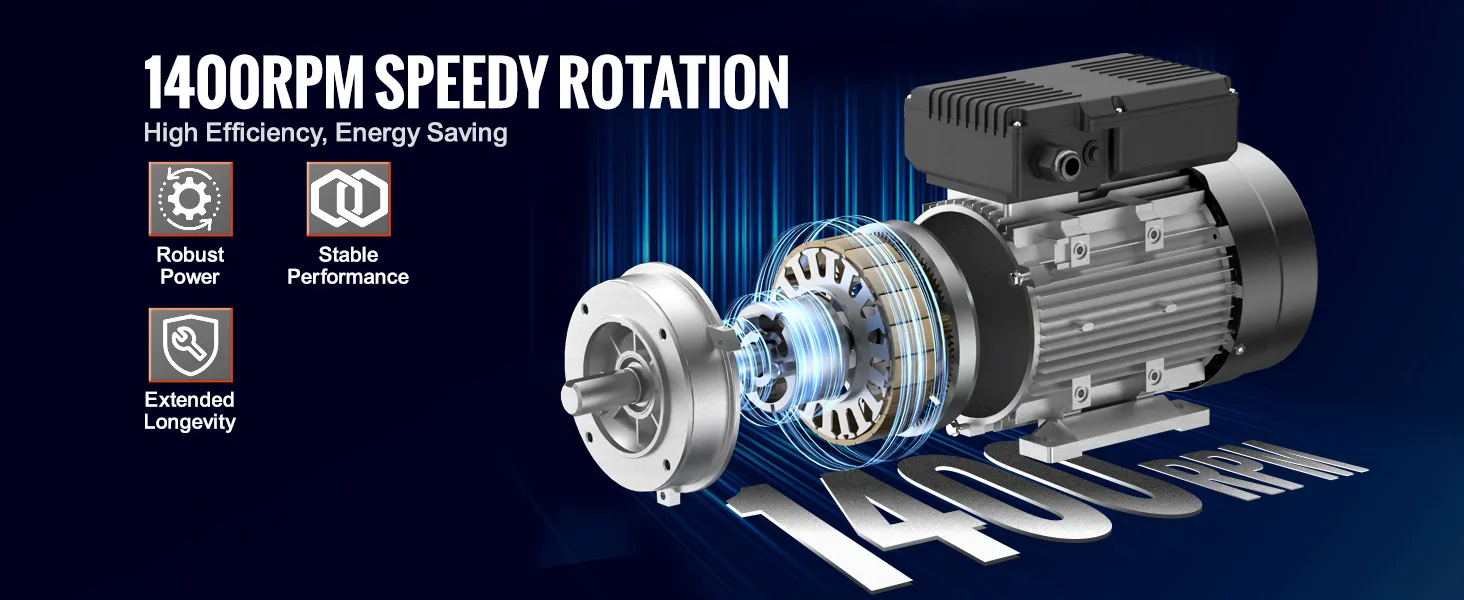 VEVOR 1.5KW electric motor boasts a high speed of 1400RPM, delivering powerful performance across various applications. Its robust power output ensures efficient operation, making it ideal for agricultural machinery and industrial equipment while saving energy and boosting productivity.