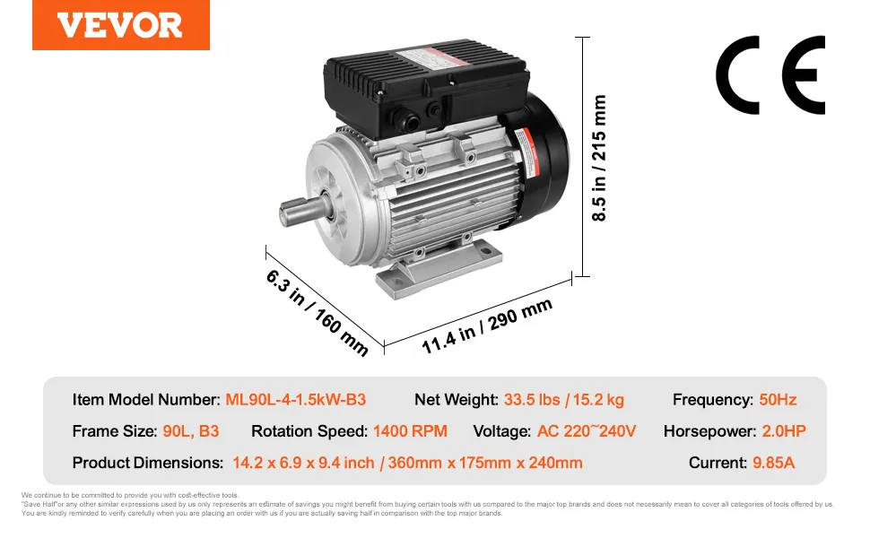 Breed scala aan toepassingen: De VEVOR-motor voor algemeen gebruik is universeel en ideaal voor waterpompen, landbouwmachines en algemene apparatuur. Het is perfect voor doe-het-zelf-projecten en reparatie-vervangingen en biedt veelzijdige en krachtige functies om aan verschillende behoeften te voldoen.