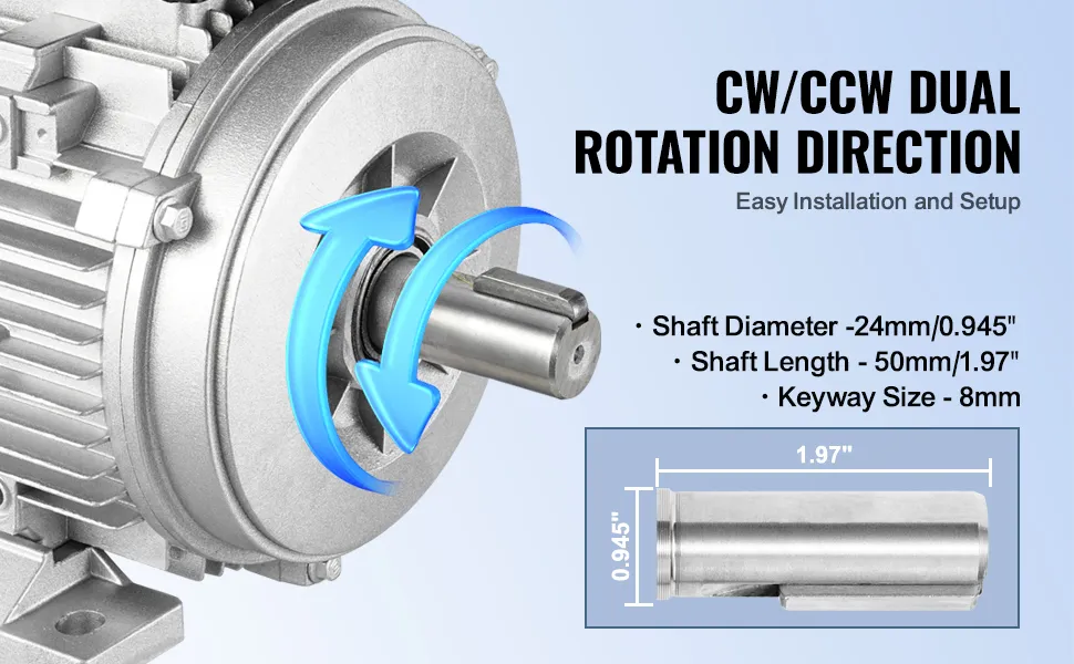 Dubbele rotatierichting: onze elektromotor biedt omkeerbare rechts-/linksrotatie, waardoor de bedrading wordt vereenvoudigd en snelle, veelzijdige verbindingen voor verschillende toepassingen mogelijk zijn.