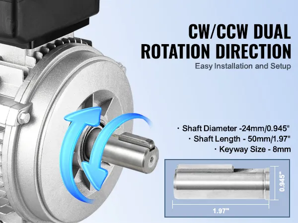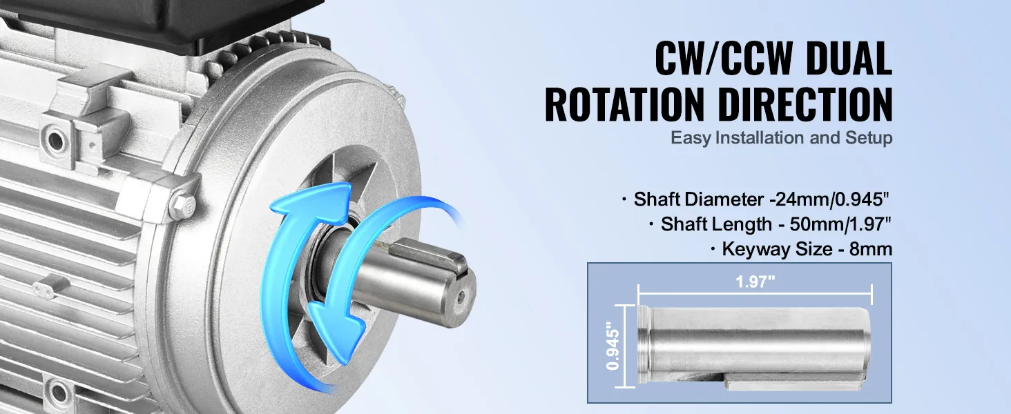 Dual Rotation Direction: Our electric motor offers reversible CW/CCW rotation, simplifying wiring installation and providing quick, versatile connections for various applications.