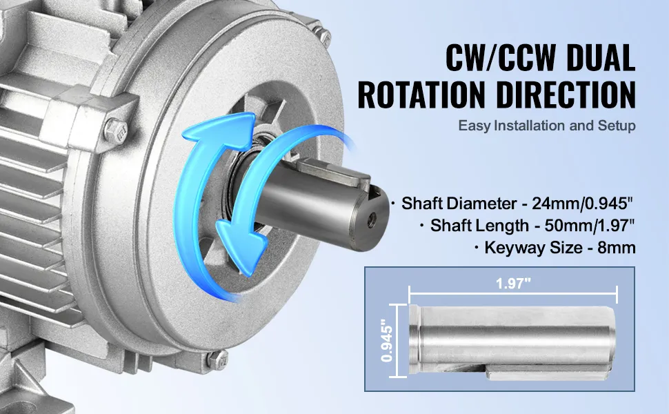 Dubbele rotatierichting: onze elektromotor biedt omkeerbare rechts-/linksrotatie, waardoor de bedrading wordt vereenvoudigd en snelle, veelzijdige verbindingen voor verschillende toepassingen mogelijk zijn.