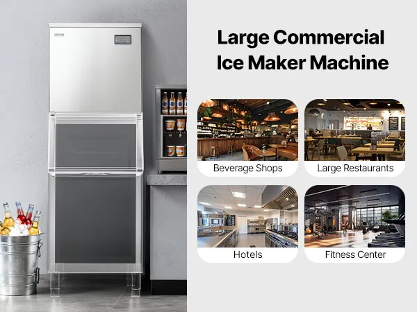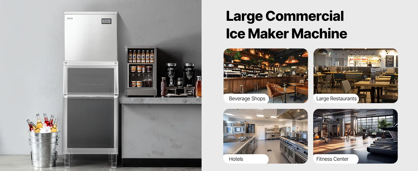 De ijsblokjesmachine heeft een grote ijsproductiecapaciteit en is daarom ideaal voor grootkeukens, restaurants, bars, hotels en drankwinkels.