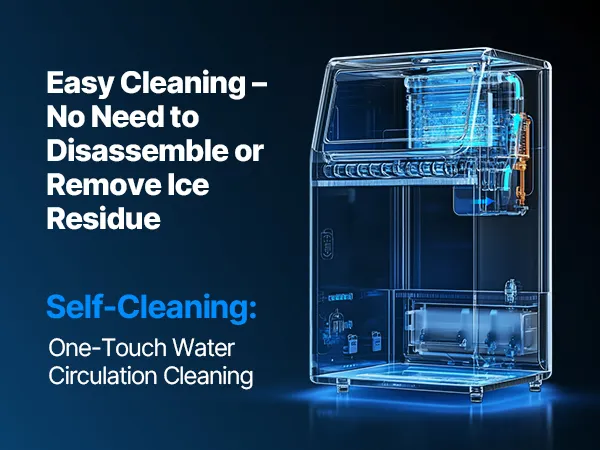 Gemakkelijk schoon te maken: Wanneer u 3 seconden op de "Mode"-knop drukt, start deze zelfreinigende ijsmachine een automatische spoelcyclus van 20 minuten.