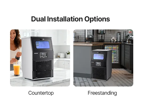 Snelle installatie: de folie hoeft niet verwijderd te worden – deze ijsblokjesmachine is direct klaar voor gebruik. Het slanke ontwerp past naadloos in keukens, bars en andere ruimtes die een flexibele plaatsing vereisen.