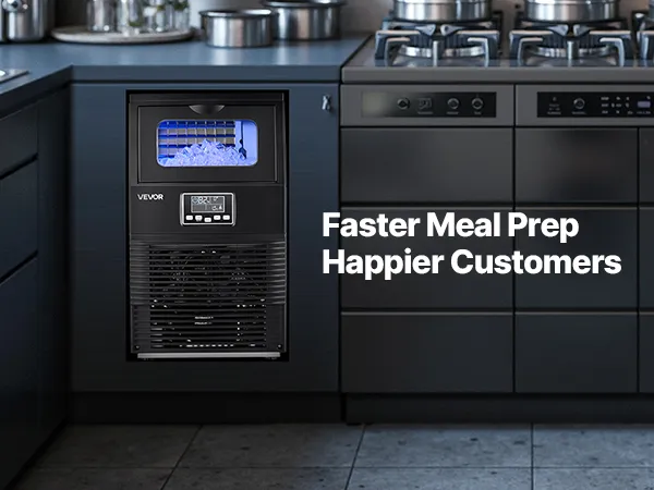 Deze geïntegreerde ijsmachine combineert ijsproductie en -opslag in één apparaat en zorgt moeiteloos voor een constante aanvoer van vers ijs. Dankzij de snelle ijsproductie, intelligente bediening en gebruiksvriendelijke bediening garandeert hij betrouwbare prestaties in drukbezochte omgevingen. Het geïntegreerde opslagreservoir houdt ijs direct beschikbaar, waardoor hij ideaal is voor restaurants, bars, hotels, kantoren en thuiskeukens.